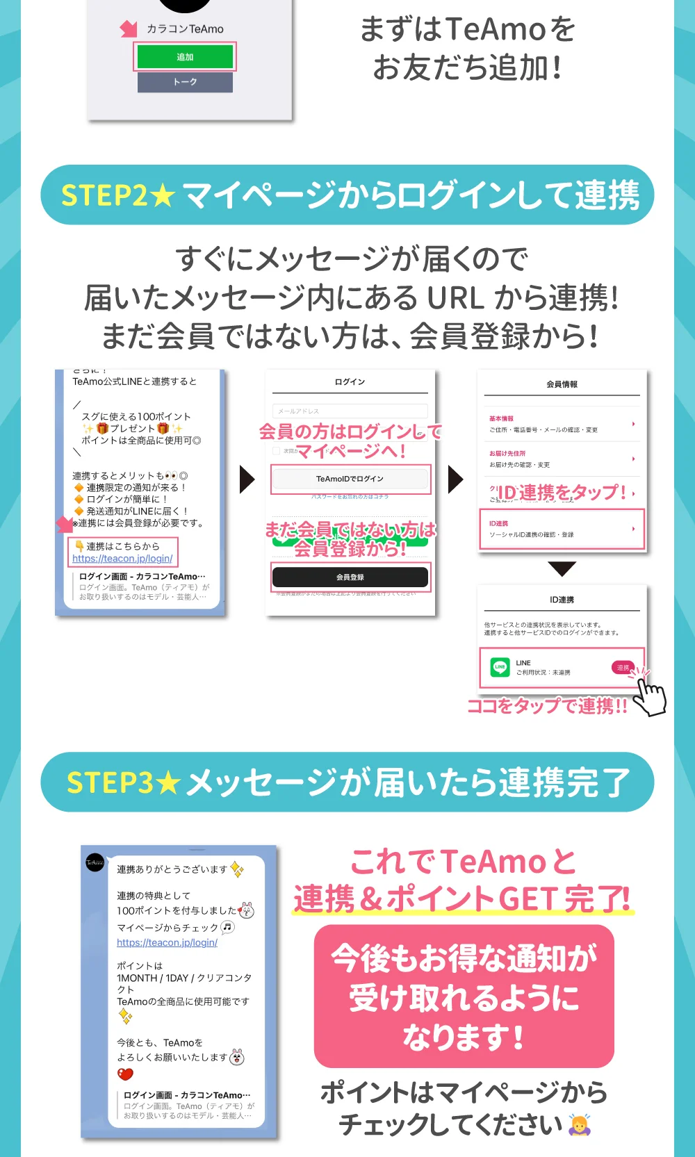 アプリ・LINE同時利用で最大500ポイントプレゼント! ティアモの公式アプリ&公式LINEを追加すると最大500ポイントプレゼント★