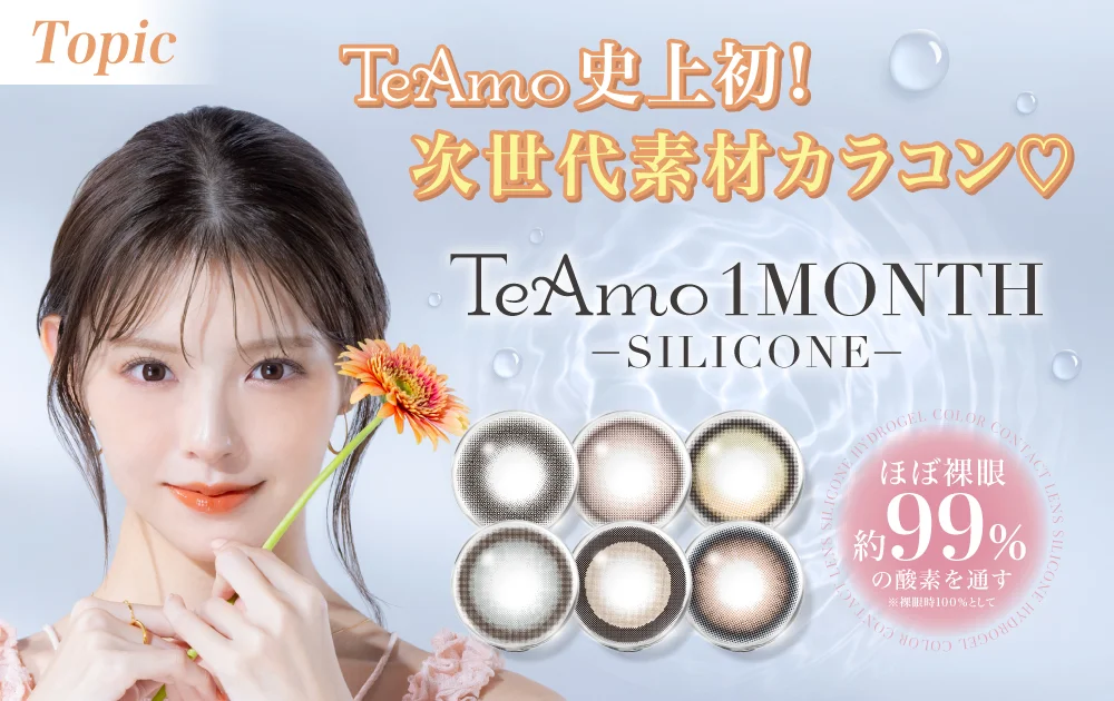 肌や髪と同じく瞳のケアもとても重要!そこでTeAmo初の「シリコーンハイドロゲル」素材を採用!