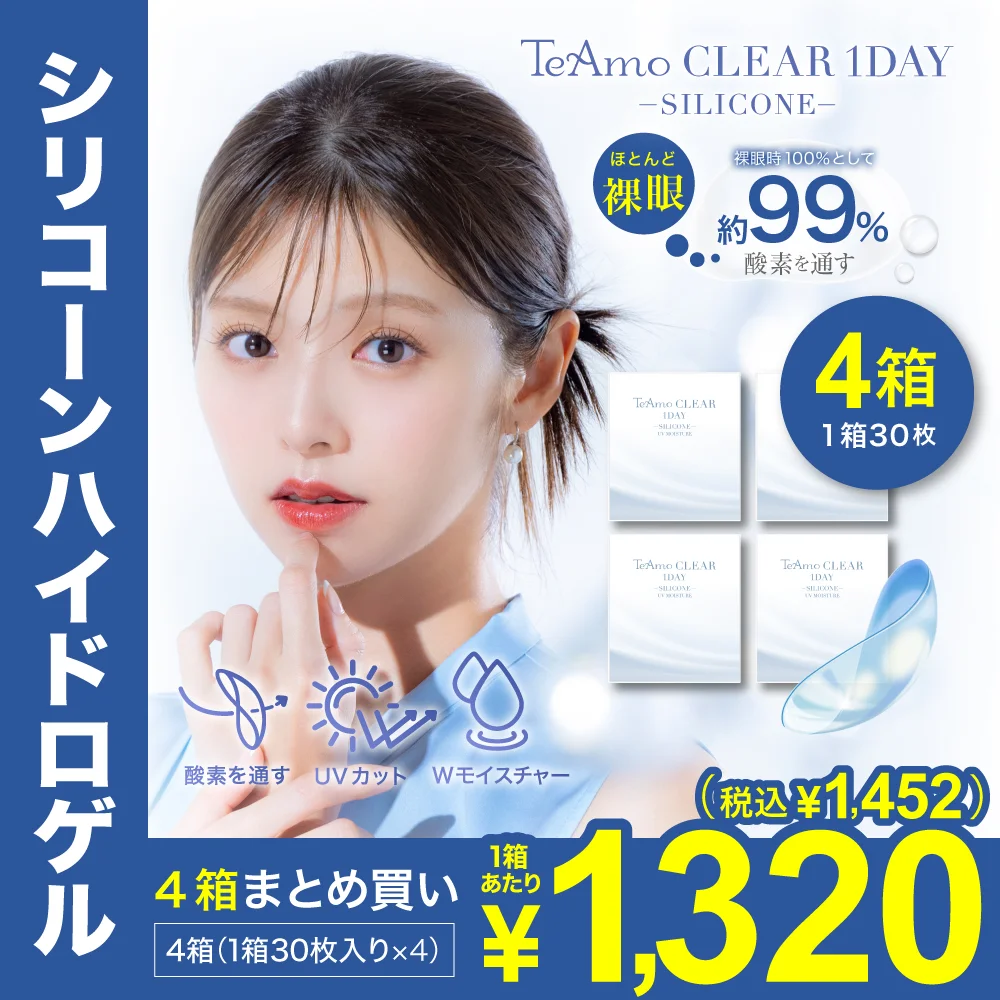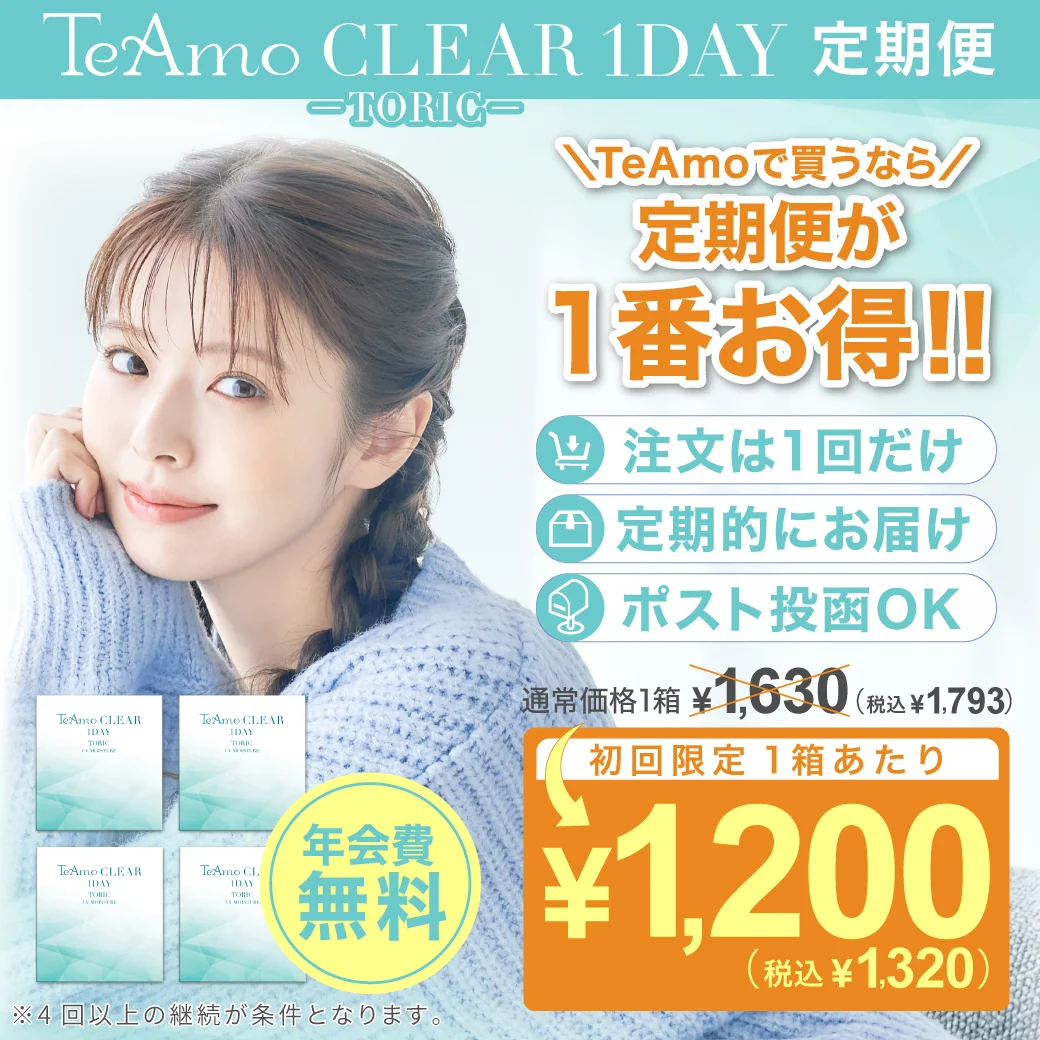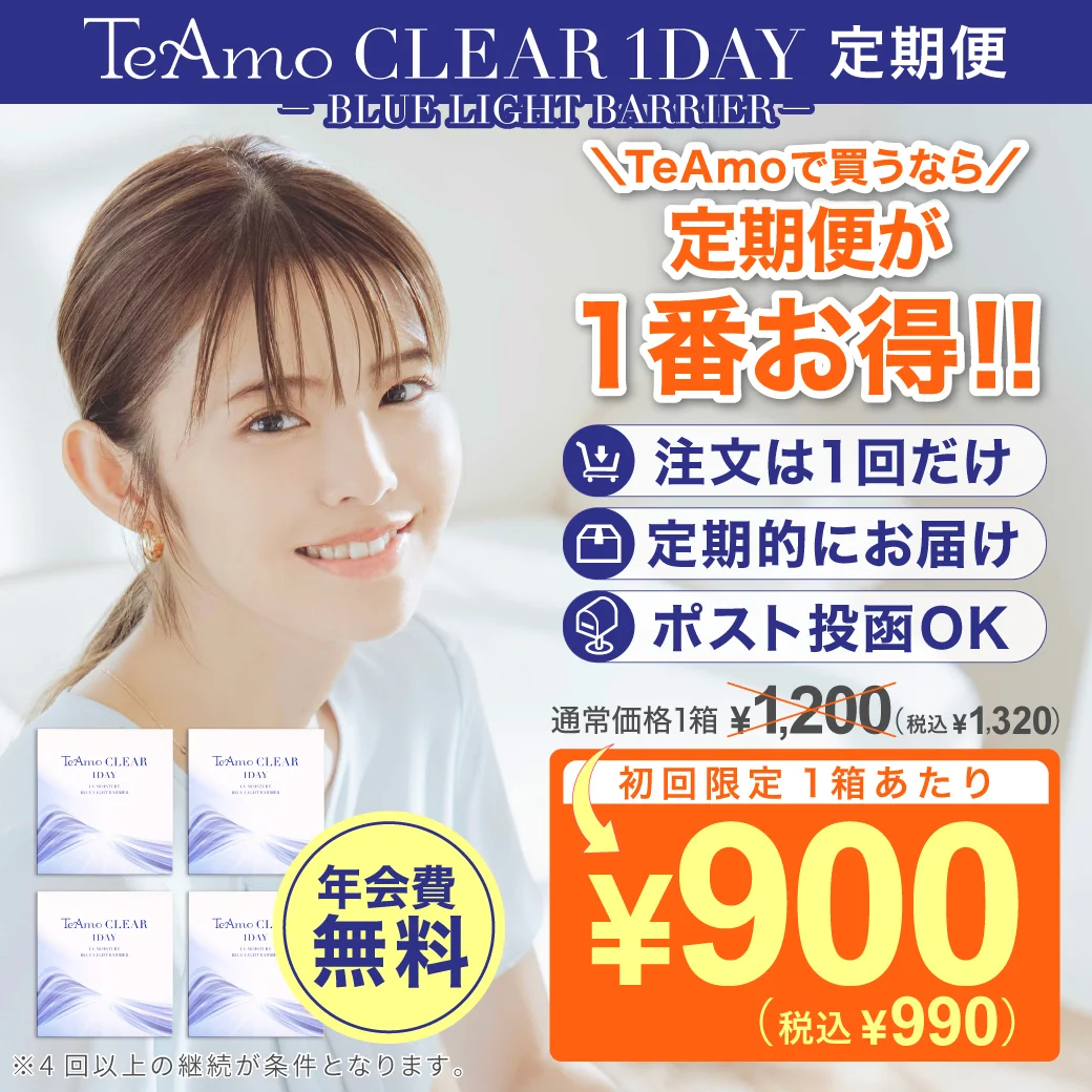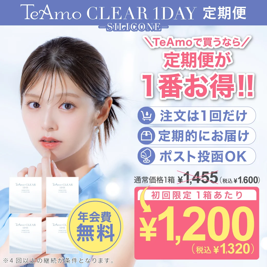 TeAmo CLEAR 1DAYは低含水クリアコンタクトレンズで定期購入をするともっとお得に使えます。